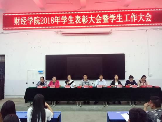 为了表彰先进,传承作风,财经学院于5月7日下午,在五区多媒体报告厅召开2018年学生表彰大会暨学生工作大会。财经学院党总支书记梁兆民、院长李东营、副院长袁向华、团总支书记黄春华以及全体辅导员和全体在校生参加了会议。会议由袁向华副院长主持。