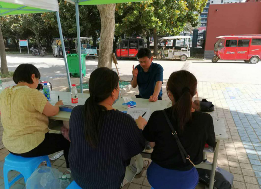 18级电子商务一班辅导员刘素丽老师,家住淮阳。6月6日早上5点,刘老师准备好早餐,亲吻一下睡梦中的儿女,7点钟准时到达学生返校复学的接待岗。7:30电商班第一位同学报道,17:40电商班最后一位返校同学到校。在高温烈日下,她和接待站的其他老师一样挥汗如雨、坚守岗位,一丝不苟地核对着每一位返校学生的材料,守护好校园安全的第一关。