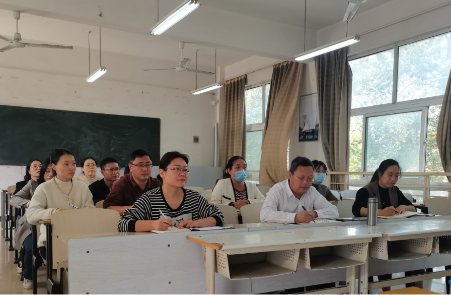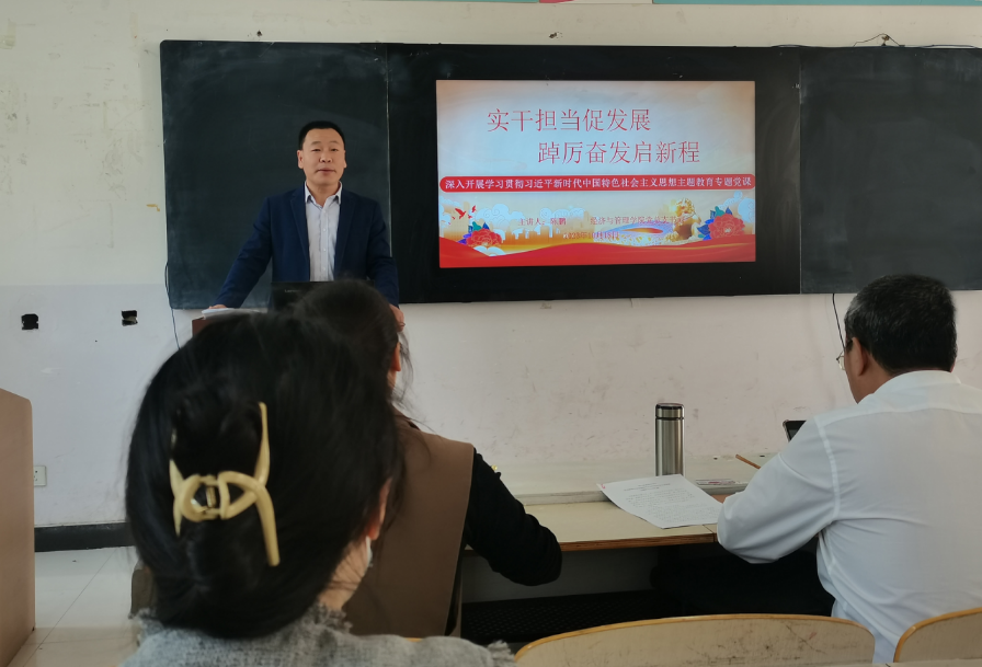 为推动学习贯彻习近平新时代中国特色社会主义思想主题教育走深走实走心,10月18日上午,贝博艾弗森代言体育官网党总支书记陈鹏以《实干担当促发展,踔厉奋发启新程》为题,在4203教室为贝博艾弗森代言体育官网全体教师党员讲授学习贯彻习近平新时代中国特色社会主义思想专题党课。党委副书记李明臣以普通党员身份参会学习。院长袁向华主持。