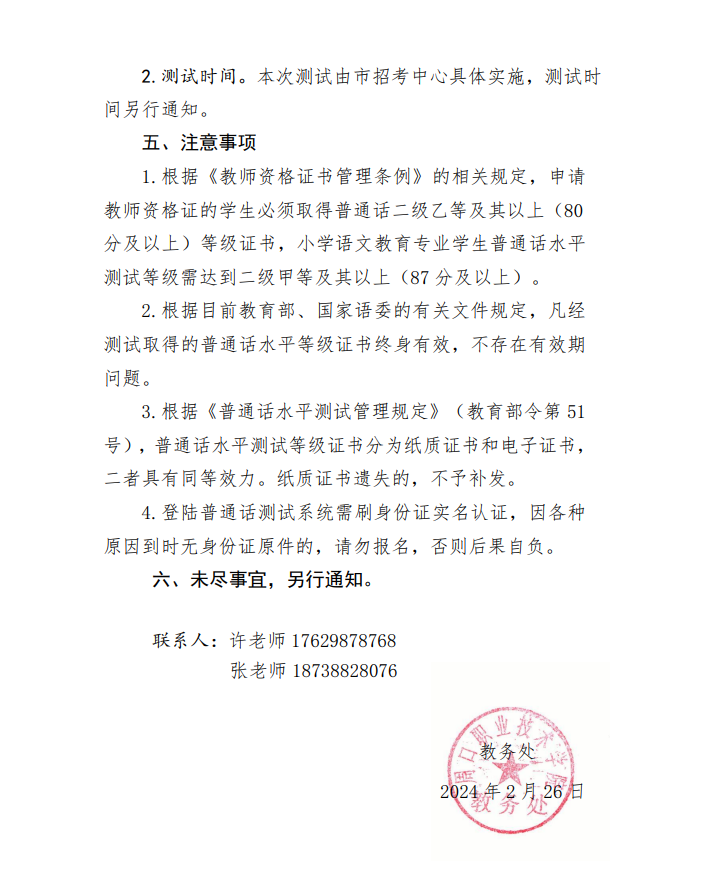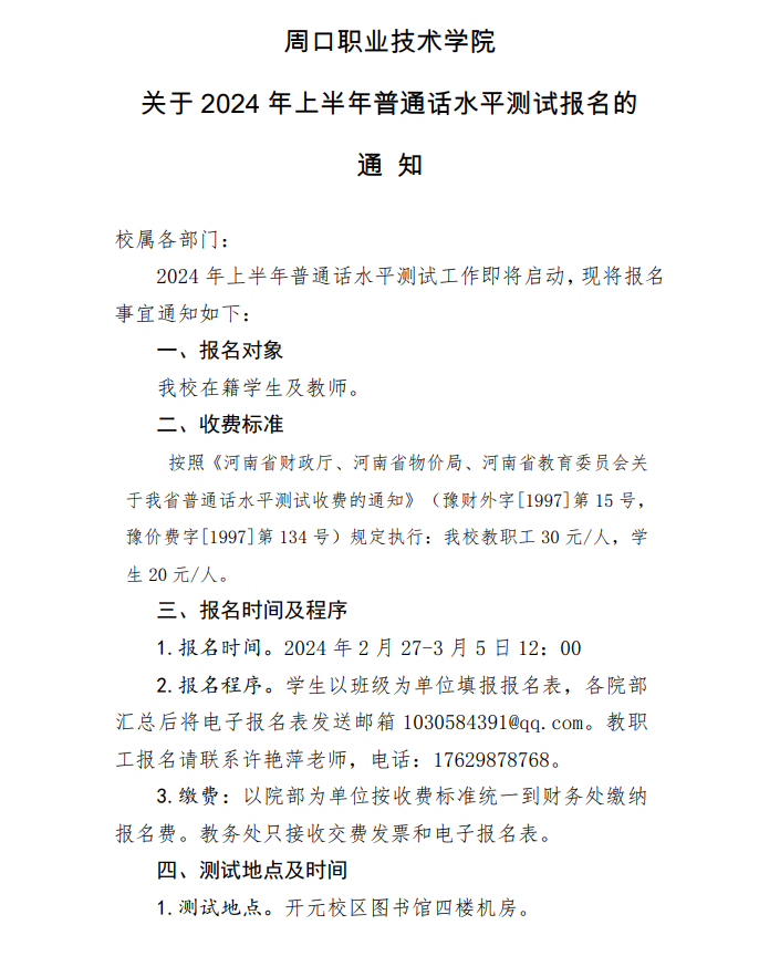 贝博艾弗森代言体育官网关于2024年上半年普通话水平测试报名的通知