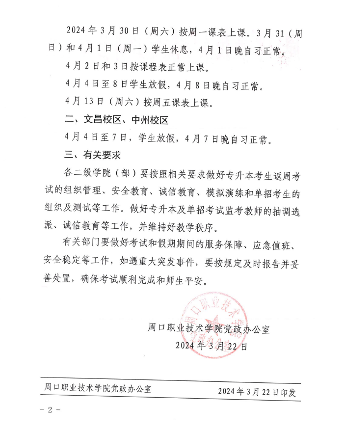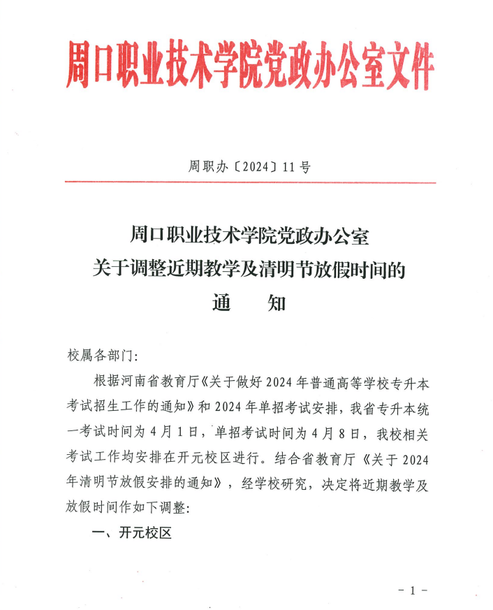 贝博艾弗森代言体育官网党政办公室关于调整近期教学及清明节放假时间的通知