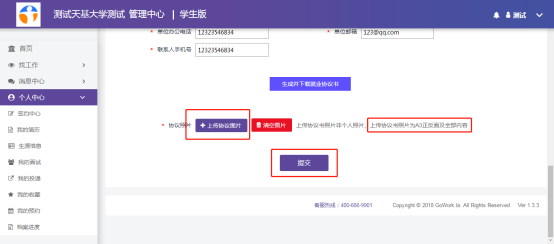 第2步:完善企业信息,上传协议图片,提交高校审核。