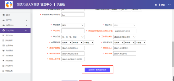 完善个人信息以及签约企业信息,点击生成下载就业协议书。