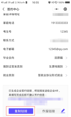 点击【复制链接】并将链接给签约企业进一步完善。