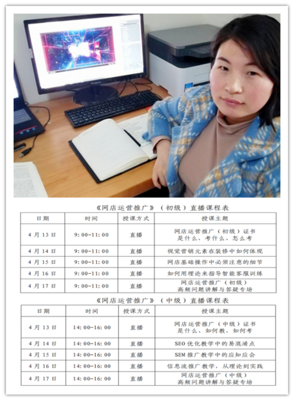 为了稳步推进1+X试点工作,鸿科经纬公司在4月13日-4月17日开展网店运营推广职业技能等级证书线上师资培训。本次师资培训班采用“1+X云课程+直播讲解QQ群答疑”的方式开展。贝博电子商务教研室10位专职教师,在教研室主任邵瑞花的带领下,全员参加培训。