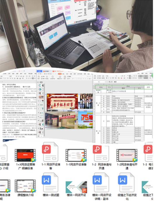 2月5日,接到教务处通知,要求各学院准备线上教学时,我就一直在思考,《电子商务综合实训》课程的线上教学要怎么做。原计划4位专业老师分阶段带领学生利用实训室内的平台软件,进行店铺仿真运营。我第一时间开始联系软件公司,希望他们可以提供联网软件,让学生在家中也可以,进行实训。最终我们课程采用钉钉直播+线上系统的教学模式。授课过程中,一方面充分利用线上各类资源,组织学生观看微课视频,另一方面针对知识体系中的重难点问题,利用钉钉直播,向学生直播讲解;同时通过在钉钉发布与课程内容相关的讨论问题,并与同学们一起分析优秀的答案,增加师生互动、生生互动;在掌握了理论知识后,组织学生利用1+X证书第三方评价公司云课堂平台,进行实操训练,充分利用其视频资源、操作系统以及习题库,进一步夯实学生的理论基础,提升实操能力。