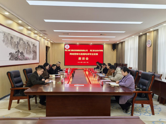 座谈会上,陈鹏书记对企业代表的到来表示欢迎,并强调此次座谈会在高职院校新双高建设背景下会发挥重要的作用。院长袁向华对网络营销与直播电商专业作详细介绍,总经理助理姚立逵对我校网络营销与直播电商专业的发展给予了充分肯定。随后,双方就网络营销与直播电商领域的行业发展趋势、潜在合作机会等进行交流,探讨了如何整合双方资源,在人才培养、实践基地建设、项目建设等方面开展更广泛深入的合作。袁院长表示在国家职教政策大力提倡产教融合、校企合作的背景下,将企业搬到学校,把课堂设在车间、直播间,为社会输送高质量人才,服务区域经济发展,离不开地方企业的大力支持。姚总表示愿与贝博“共商、共建、共享”,为贝博网络营销与直播电商专业学生提供实习就业岗位,为与贝博开启产教融合、校企合作打下基础。