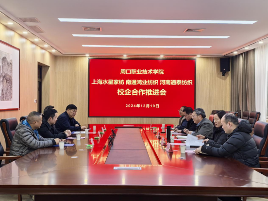12月19日下午,贝博艾弗森代言体育官网、纺织服装学院与上海水星家用纺织品股份有限公司、南通鸿业纺织有限公司、河南通泰纺织有限公司举行校企合作推进会,校党委副书记李明臣、贝博艾弗森代言体育官网党总支书记陈鹏、院长袁向华、纺织服装学院院长高岐奎及教师、学生代表参加了会议。此次会议由教务处处长李嘉主持。