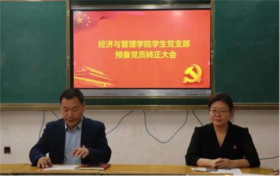 为进一步规范党员发展流程,提高党员发展质量,5月26日下午,经济管理学院党支部在教学楼4201教室召开预备党员转正大会,大会讨论了党员转正的相关事宜。党总支书记陈鹏、学生支部书记郑文娟以及各委员参加会议。会议由学生支部书记郑文娟主持。