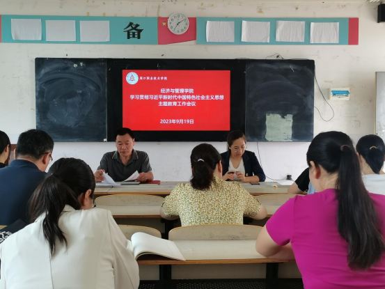 党总支书记陈鹏传达了学校学习贯彻习近平新时代中国特色社会主义思想主题教育工作会议精神,陈书记指出,全体党员同志要进一步提升政治站位,不断增强思想自觉和行动自觉,将理论学习贯穿到工作始终;加强组织领导,要把开展好主题教育作为党支部政治生活中的一件大事,精心组织主题教育的实施,营造良好的舆论氛围,高标准高质量完成主题教育各项任务。把开展主题教育同全面推进学院内涵式高质量发展各项工作结合起来,确保主题教育工作取得成效。