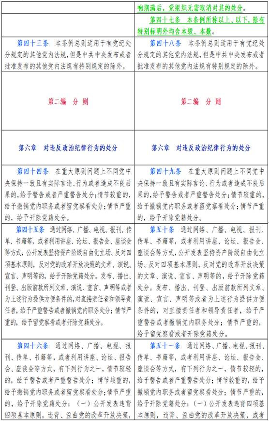 中国共产党纪律处分条例新旧对比天天学习材料六