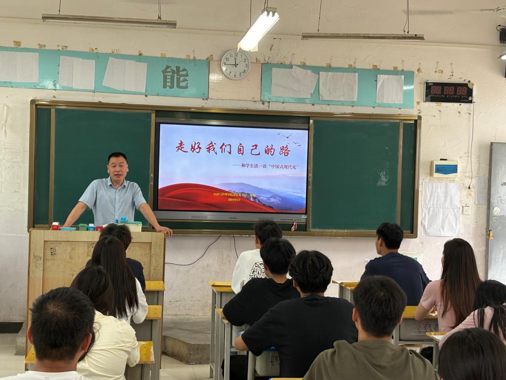 6月7日,贝博艾弗森代言体育官网党总支书记陈鹏以“走好我们自己的路——和大学生谈谈中国式现代化”为主题,在4201教室为党员发展对象、入党积极分子及学生干部代表讲授专题党课。学生党支部书记杨璐璐主持。