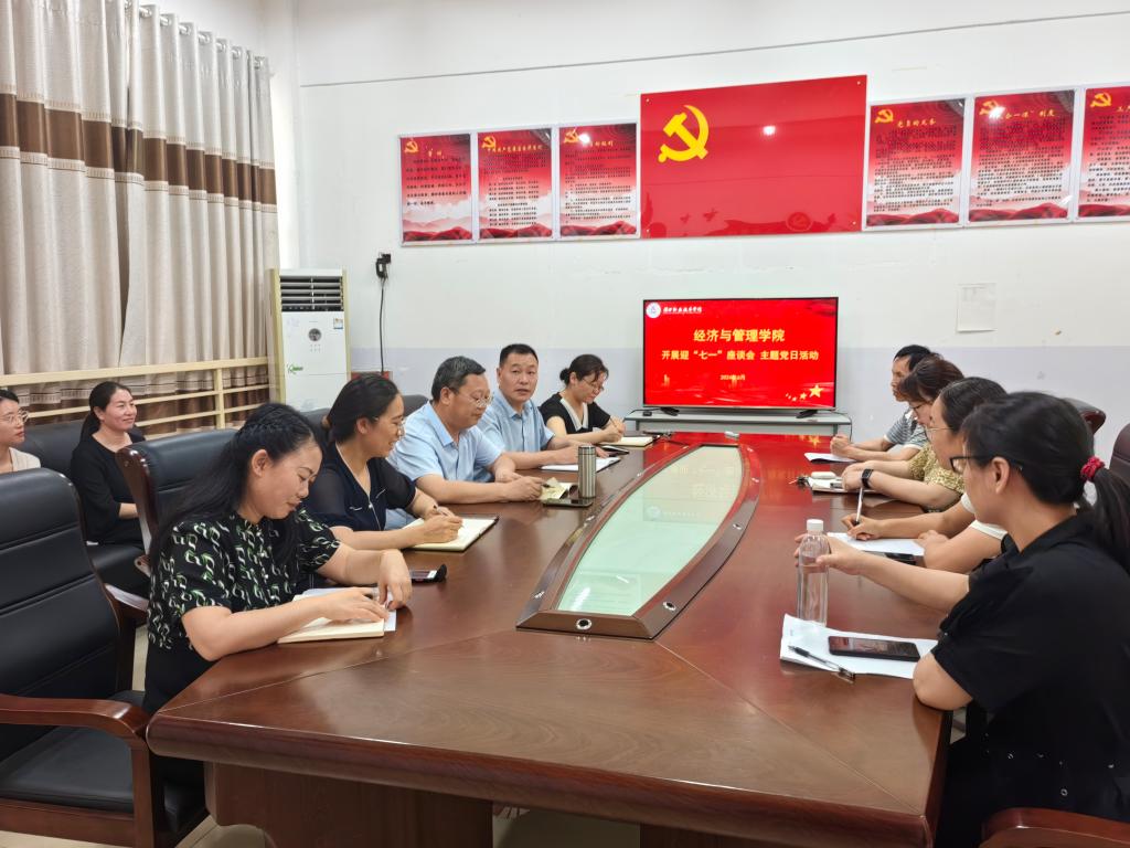 在热烈庆祝中国共产党成立103周年之际,进一步激发广大党员的凝聚力和战斗力,贝博艾弗森代言体育官网党总支于6月27日组织开展了“迎七一”主题党日活动暨座谈交流会。此次活动以“传承红色基因,共筑新时代梦想”为主题,旨在通过回顾党的光辉历程,弘扬党的优良传统,激励广大党员不忘初心、牢记使命,为新时代的发展贡献智慧和力量。经管学院全体参加座谈会,党委副书记李明臣出席了座谈会。
