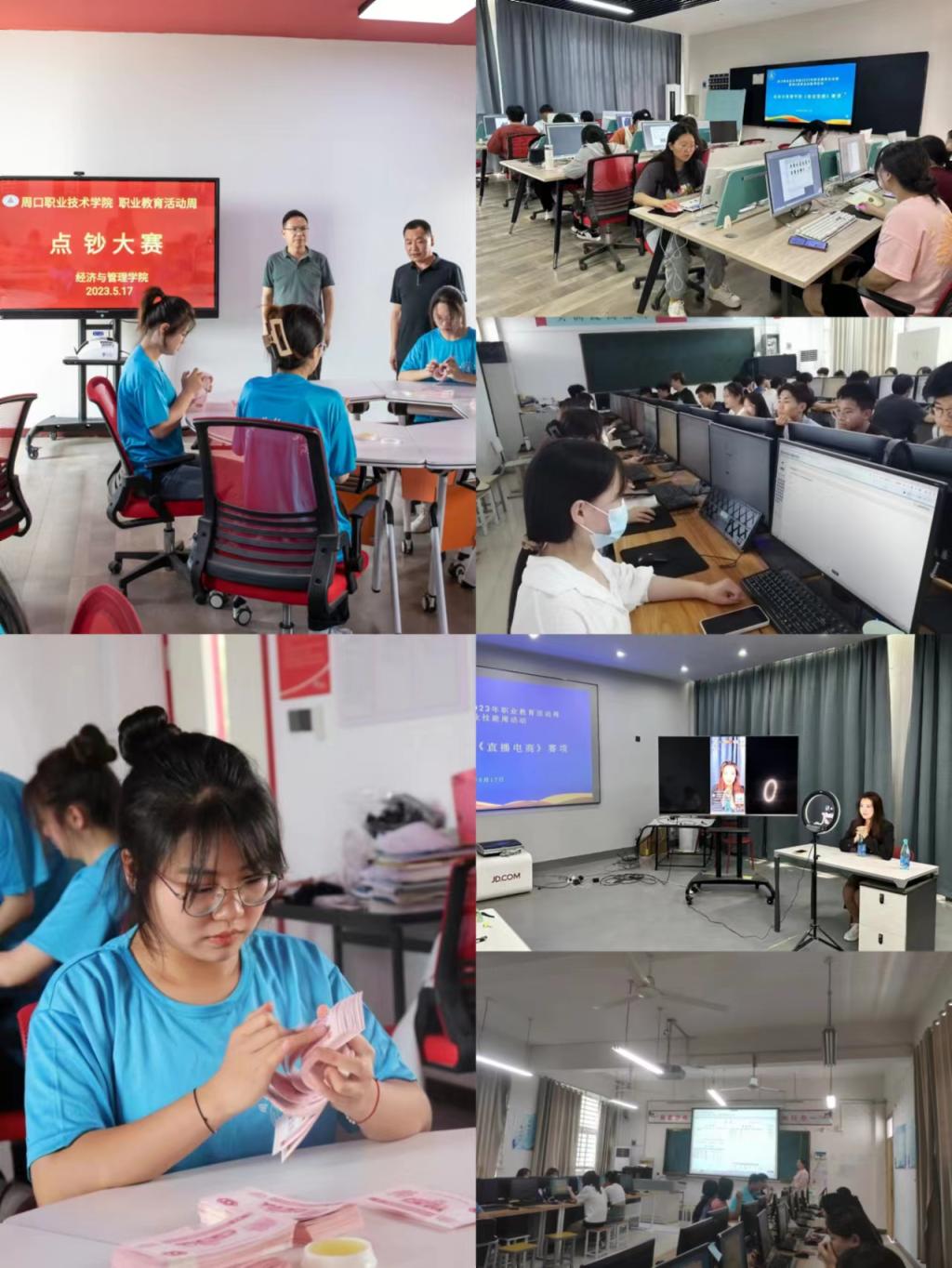 5月17日下午举办了“点钞”技能、企业经营管理沙盘、直播电商、网店运营推广、视觉营销、会计实操技能6个赛项的决赛。本次职业技能竞赛周活动不仅为选手提供了一个展示自我的平台,更重要的是丰富了同学们的课余生活,营造了多彩活力的校园氛围。