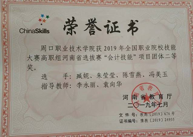 2019年参加河南省财税技能竞赛(教师和参赛选手合影)